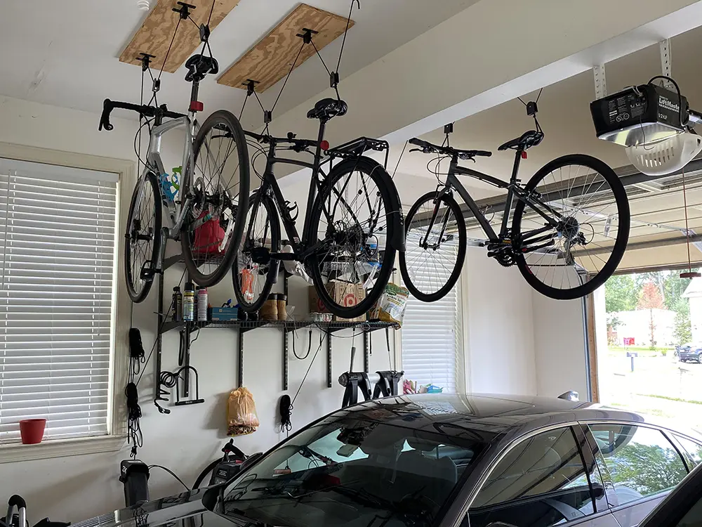 If floor space is tight, look up! Ceiling racks let you hang your bike overhead with a simple hook system, keeping it safe while freeing up valuable space.