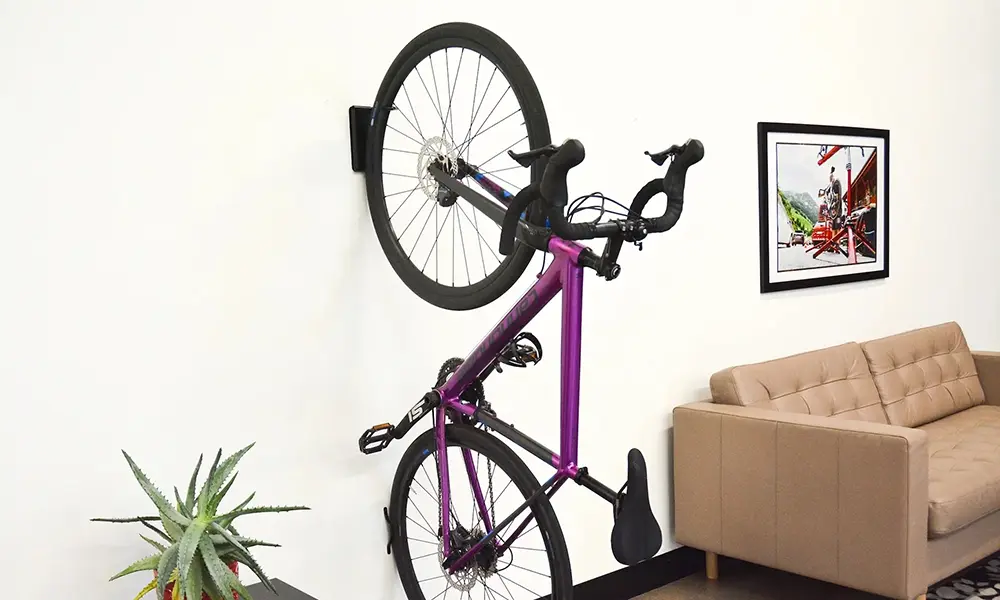 Wall brackets are a sleek option that turns your bike into a design feature. They don’t take up much space, and the bike itself becomes part of the décor.