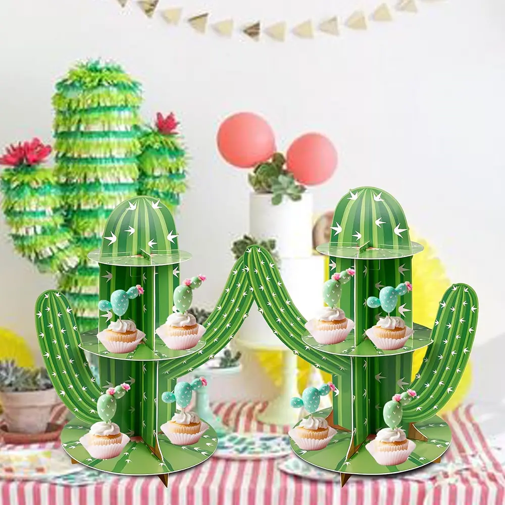 This cake stand adds cactus stems as decoration to the regular three-tiered look to liven up your cake stand and make it the highlight of your party.