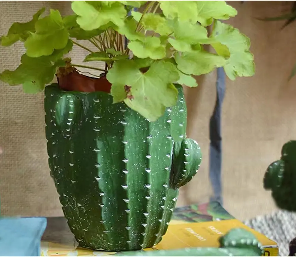 Green cactus shaped enough to be noticed.Flower pot for succulent plants, flowers houseplants, or herbs. The minimalist design as a storage space,you can put in scissors, twine, garden tools, etc. More convenient and optimizes, enhancing the aesthetics of your garden.
