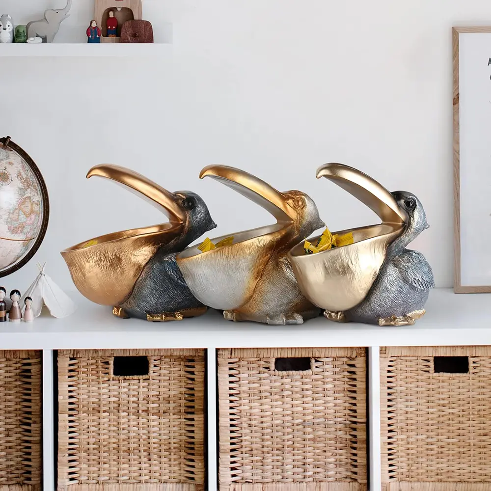 Equal parts chic and quirky, this pelican dish is perfect for entryways or office desks. Its detailed design and sturdy resin build make it both useful and eye-catching.