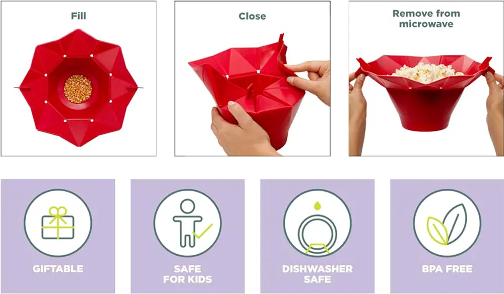 If you want popcorn fast with minimal effort, the Salbree microwave popcorn popper is a solid pick. It features built-in handles for easy removal from the microwave (just note they can get hot, so oven mitts are your friend). No oil is needed—just add kernels, pop, and finish with your favorite seasonings or butter. It’s simple, mess-free, and perfect for quick cravings.