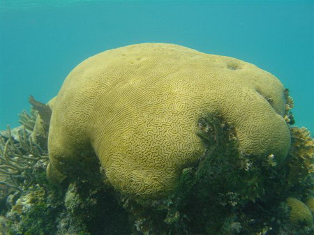 The Belize Barrier Reef is a series of coral reefs straddling the coast of Belize, roughly 300 meters offshore in the north and 40 kilometers in the south within the country limits. It is continuous from Cancún on the northeast tip of the Yucatán Peninsula through the Riviera Maya up to offshore Guatemala, making it the second largest coral reef system in the world after the Great Barrier Reef in Australia, popular for scuba diving and snorkeling.