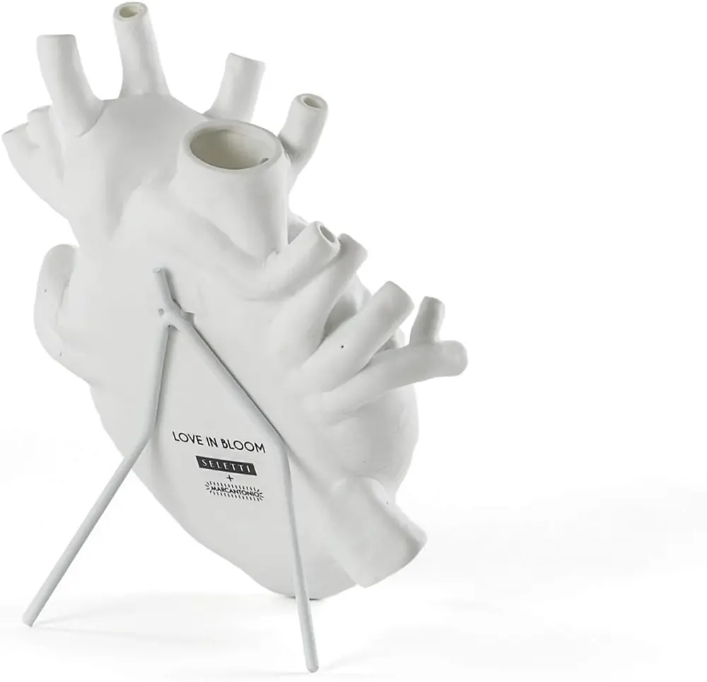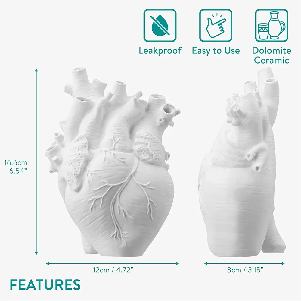 If you’re prone to accidents (guilty!), this white resin heart vase is your best friend. Made from sturdy, durable resin, it’s resistant to wear and tear. It features large holes that make it easy to stuff with flowers without worrying about leaks, combining total practicality with that anatomical heart vase elegance we all love.