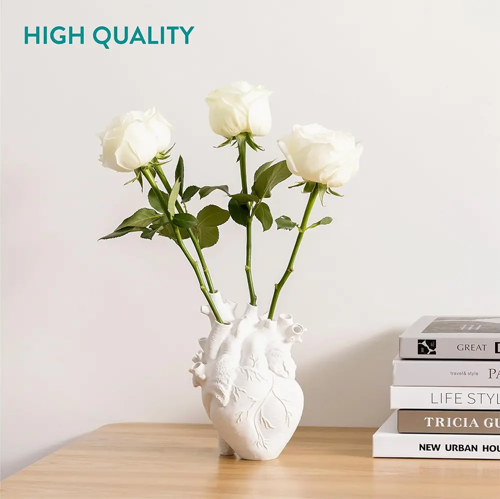 If you love a bit of texture, this resin version is a winner. It features human heart carving lines that make it look super realistic and attractive. At about 13x17cm, it’s a lightweight bud vase that fits perfectly into a farmhouse or rustic office setup. It makes flower arranging feel like you’re creating a tiny biological sculpture.