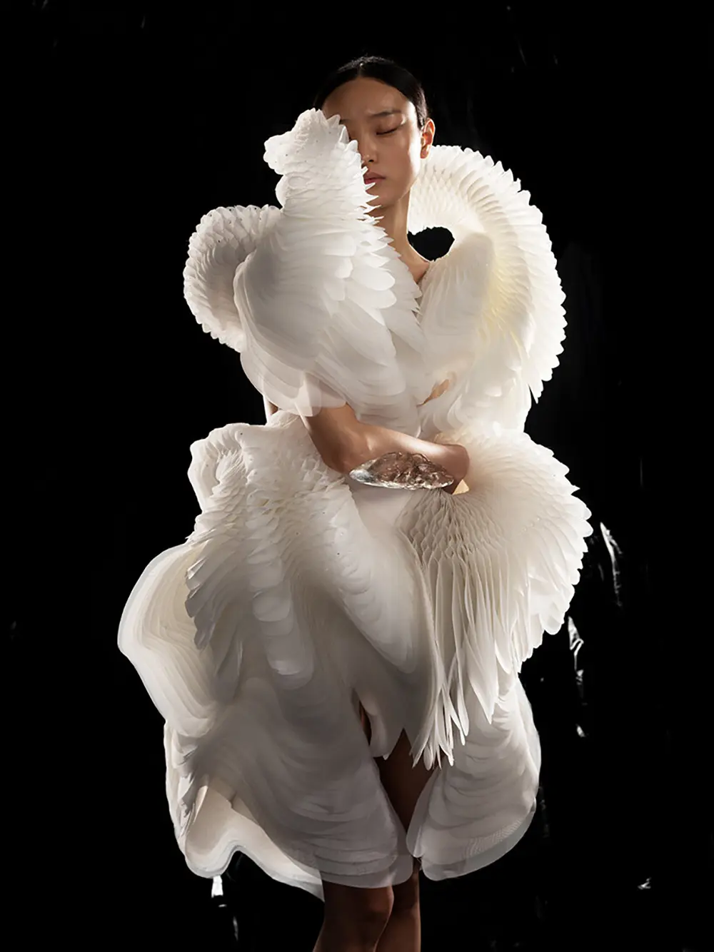 What makes her work so unique is her obsession with digital fabrication. We’re talking about 3D-printed dresses and laser-cut meshes that look like they’re floating or unaffected by gravity. Instead of just using fabric, she uses layered polymers and translucent synthetics to create garments that ripple and move like living organisms. It’s honestly hard to tell where the “clothing” ends and “architecture” begins.