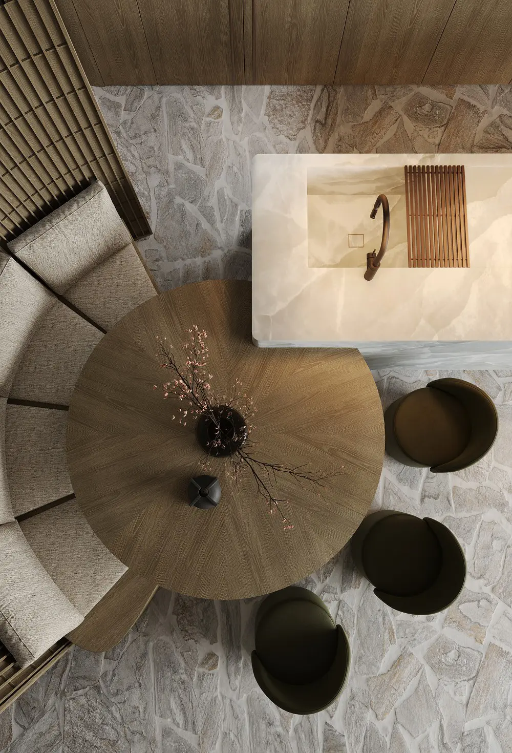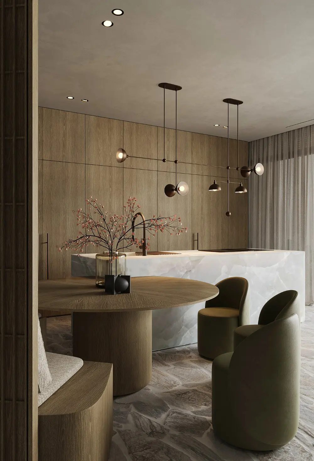 If you’re dreaming of a space that feels like a warm hug but looks like a high-end gallery, you need to see Sienna Sanctuary. Designed and visualized by Victoria Osypova, this home is the ultimate masterclass in effortless sophistication. It’s a gorgeous mix of organic warmth and contemporary luxury, packed with earthy hues, rich textures, and timeless materials like marble and wood.