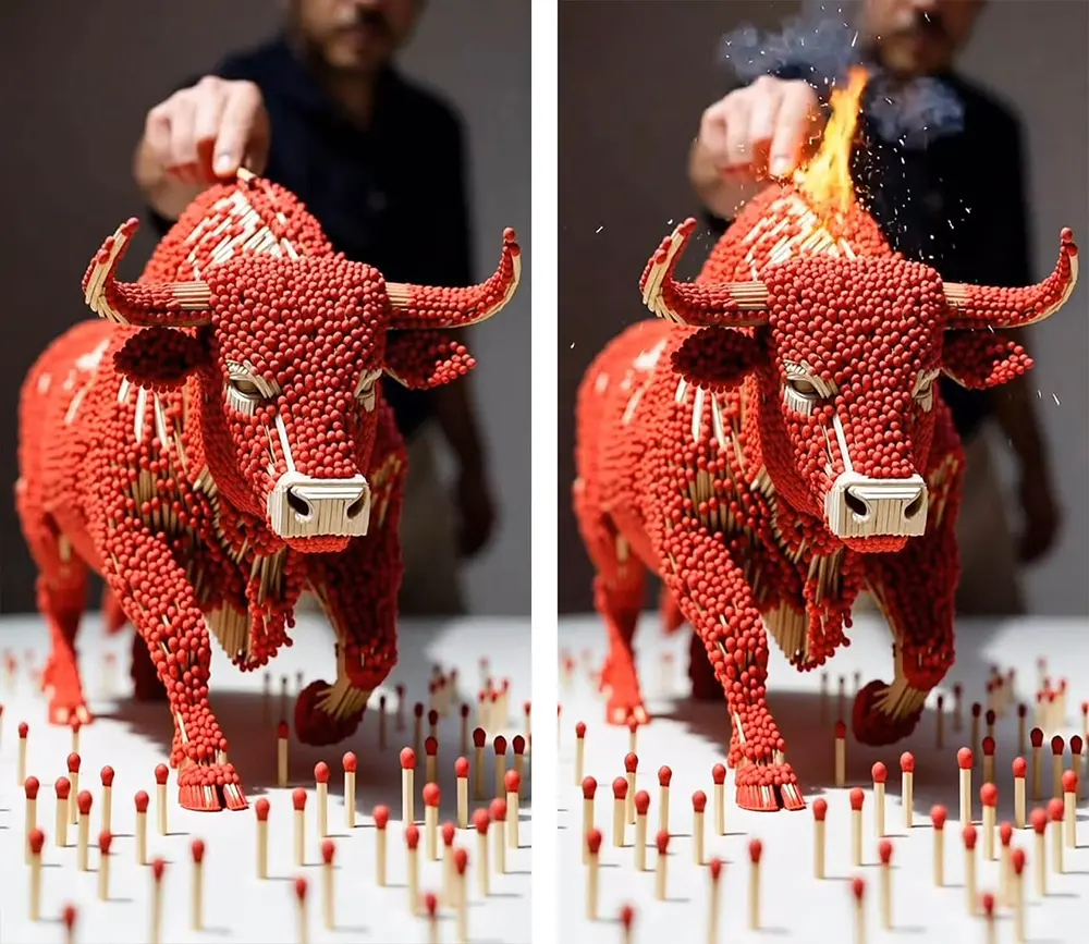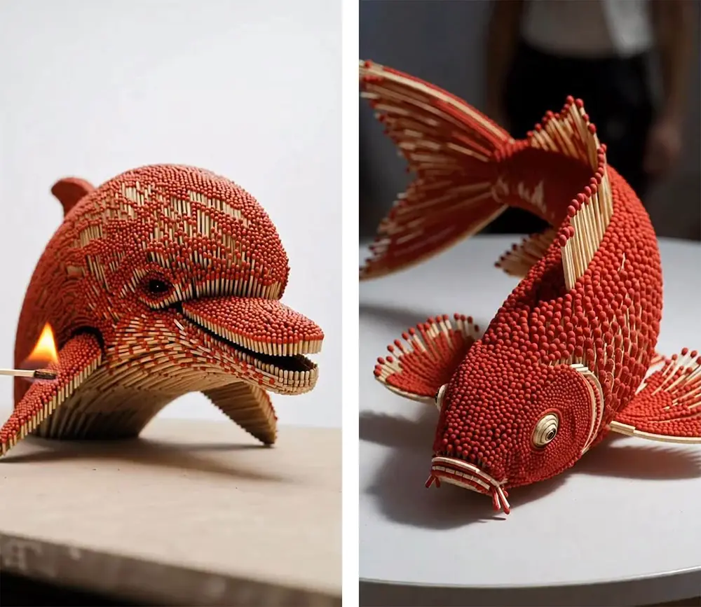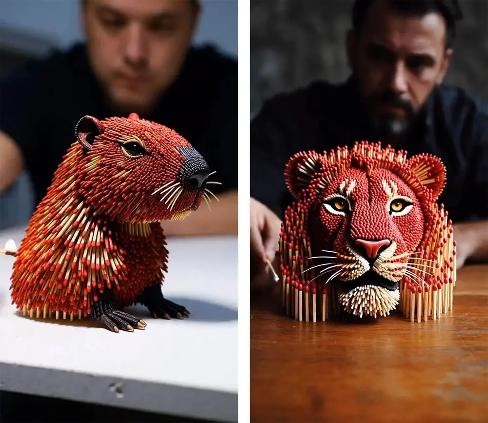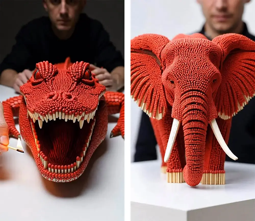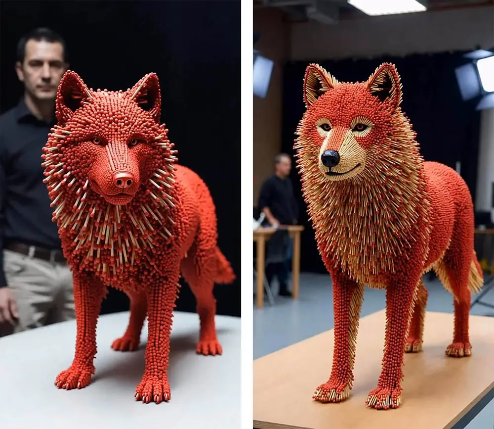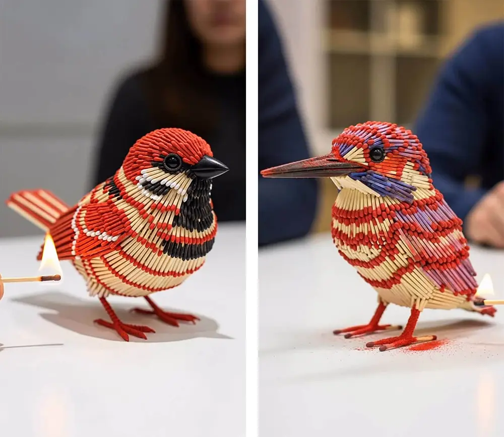While these matchstick sculptures are undeniably cool and visually addictive, there’s a catch: they likely don’t exist in the physical world. If you look closely at the sequences, several tiny details suggest we are looking at high-end digital art rather than a wooden masterpiece. The way the fire moves and the perfect uniformity of the match heads are tell-tale signs of AI generation or digital rendering.
