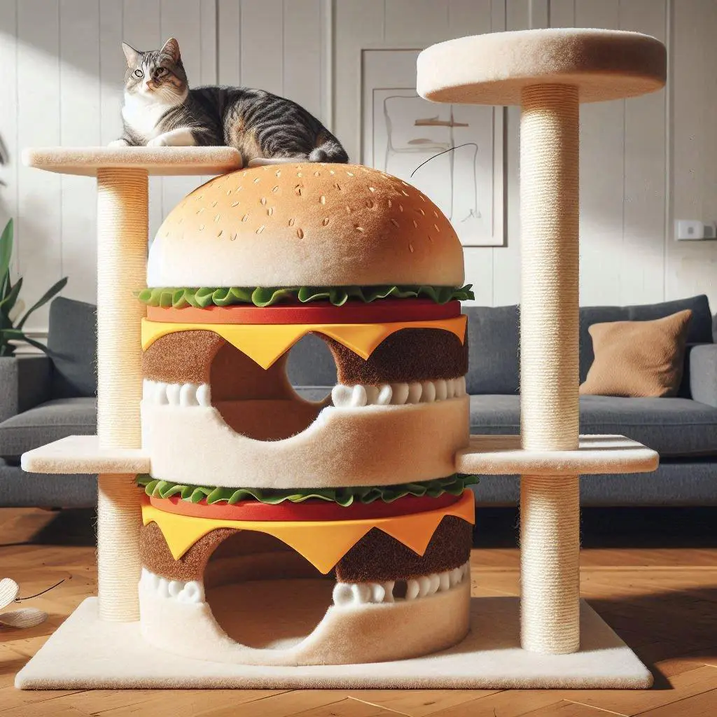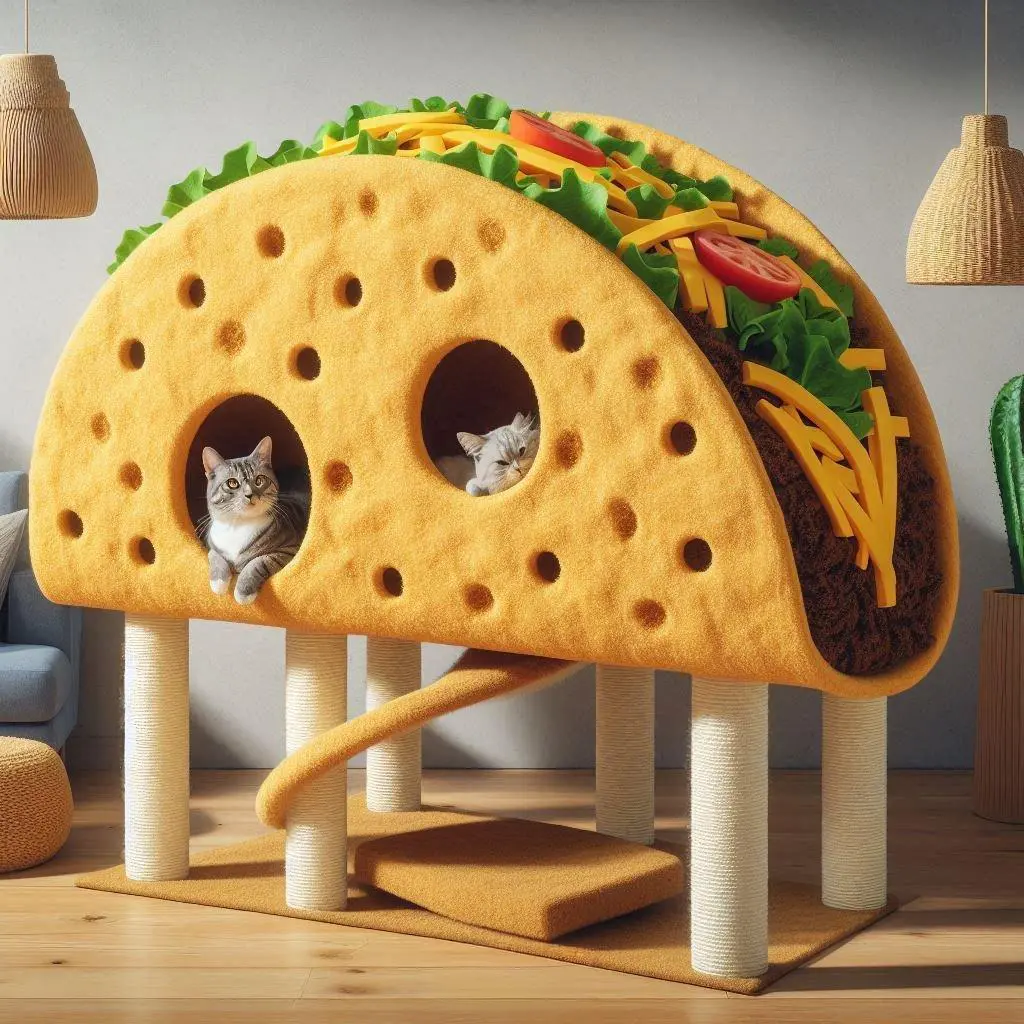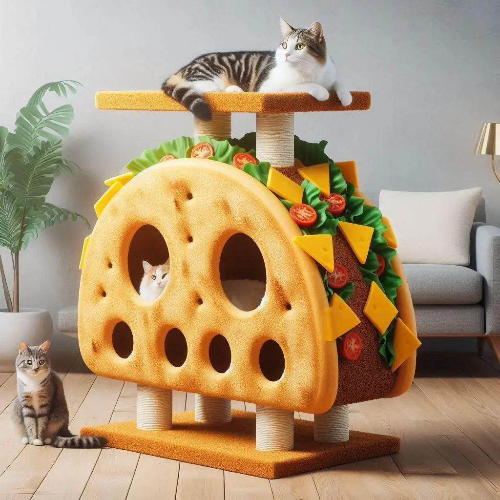 Enter the realm of food-shaped cat towers, a delightful fusion of functionality and whimsy that adds a touch of culinary charm to your cat’s kingdom. These concepts, designed to resemble delectable treats like pizza, tacos, and even hamburgers, are more than just furniture; they’re an invitation to unleash your feline’s inner foodie.