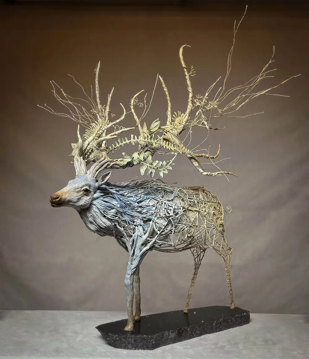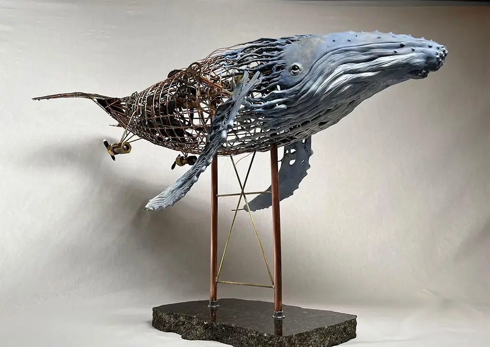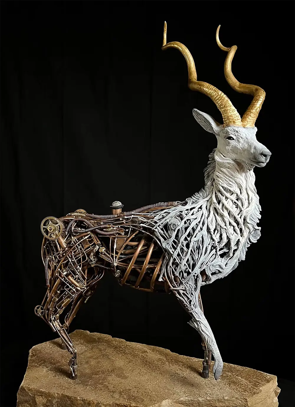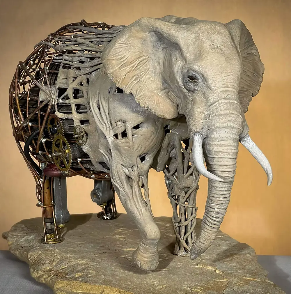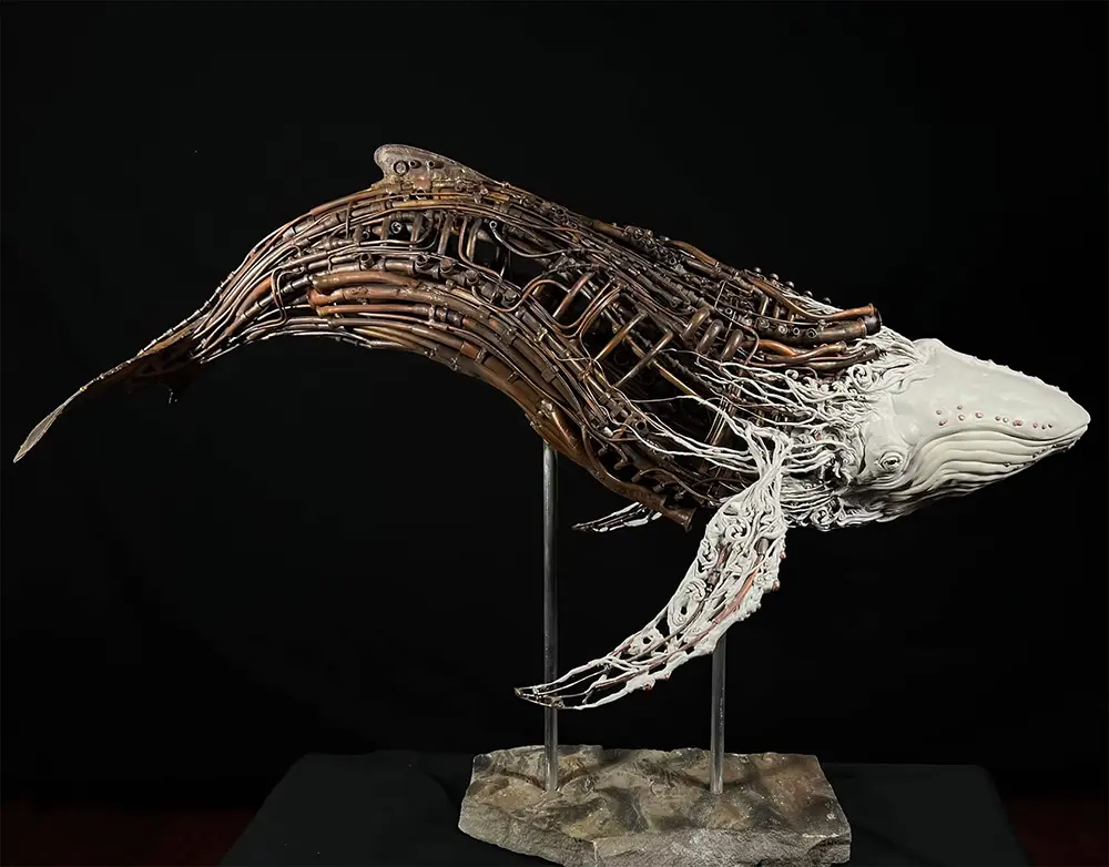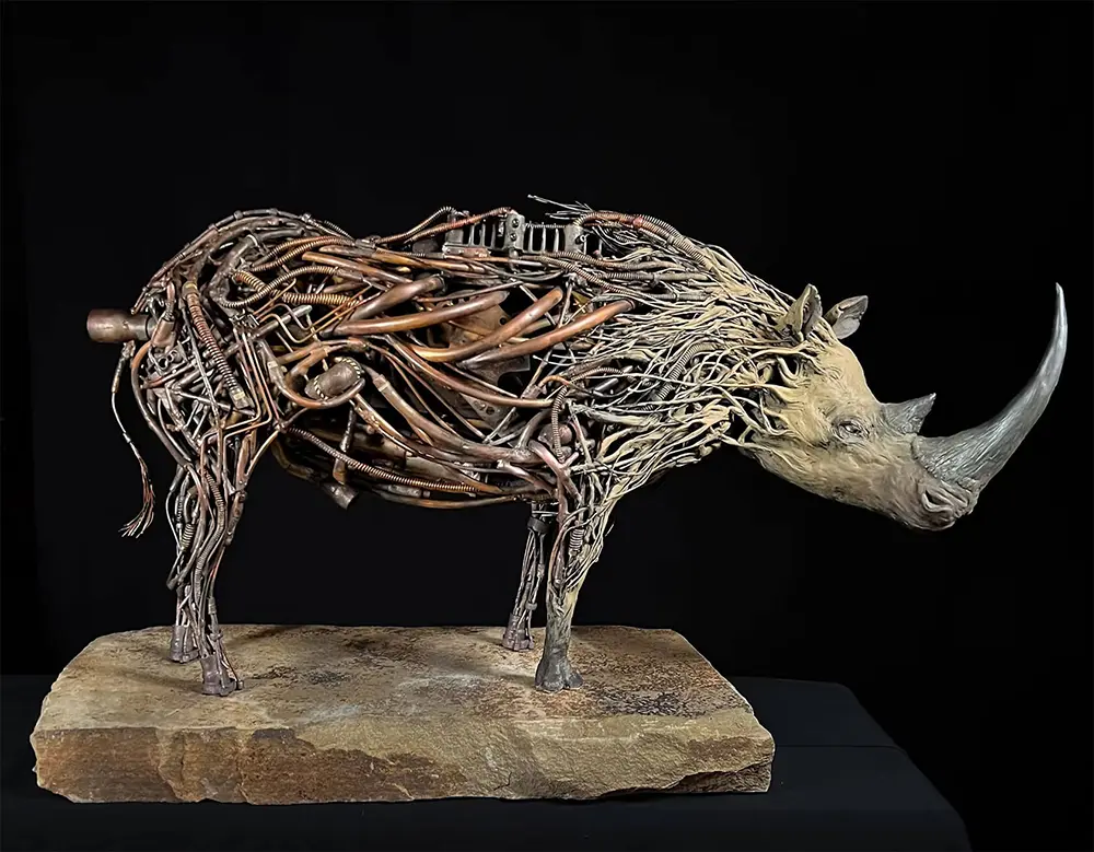 His recent series is especially moving. It focuses on critically endangered species, with each sculpture capturing a fragile balance between survival and extinction. Whether it’s a delicate bird with steel wings or a quiet predator frozen in time, these pieces speak to the tension between human impact and nature’s resilience.