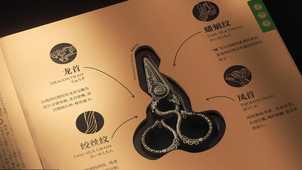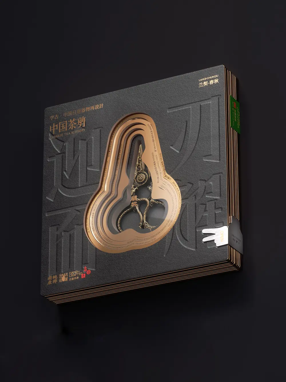 Instead of your typical plastic clamshell, the Chinese tea scissors are housed in a structure inspired by ancient manuscripts. The design actually echoes the growth rings of a tree, turning the simple act of unboxing into a three-dimensional journey through history. It’s built to feel like an “immersive journey” into the philosophy of oneness. Even the outer layer features the debossed words “Effortless Cutting,” giving a modern edge to a very traditional ideal.