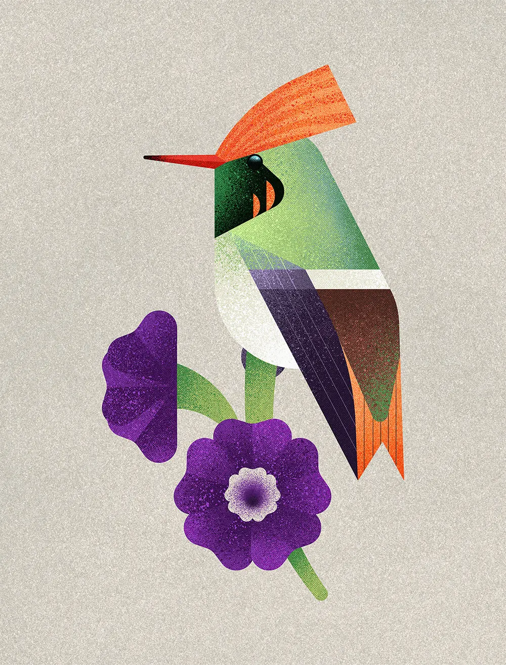Aga draws serious inspiration from the natural world, but she has a clear favorite: birds. Her avian illustration work pops up across her portfolio, and it’s truly distinctive. She takes these soft, fluttery creatures and depicts them using elegant geometric forms, subtle textures, and a beautifully refined color palette. The result is abstract art that still feels incredibly grounded in reality. It’s pure harmony!