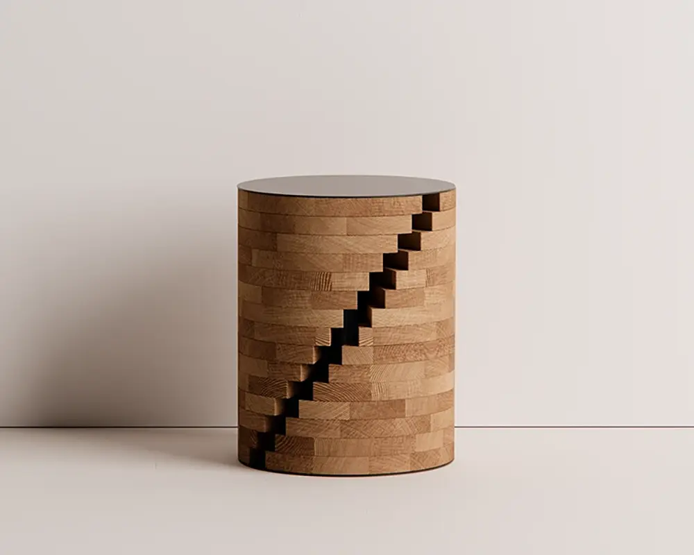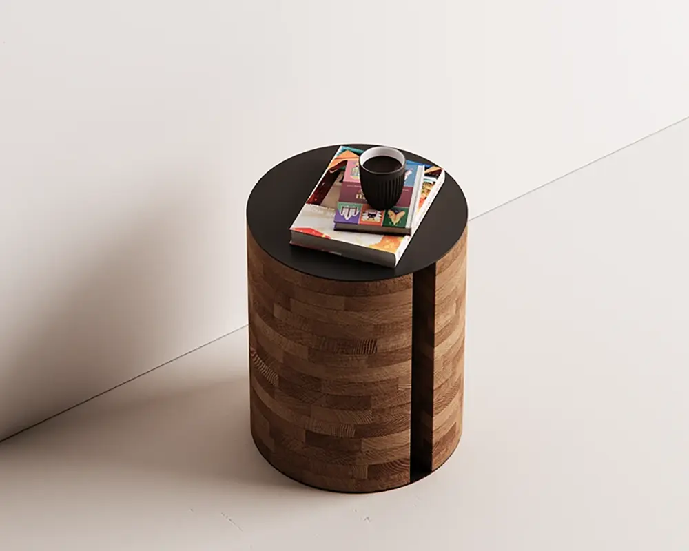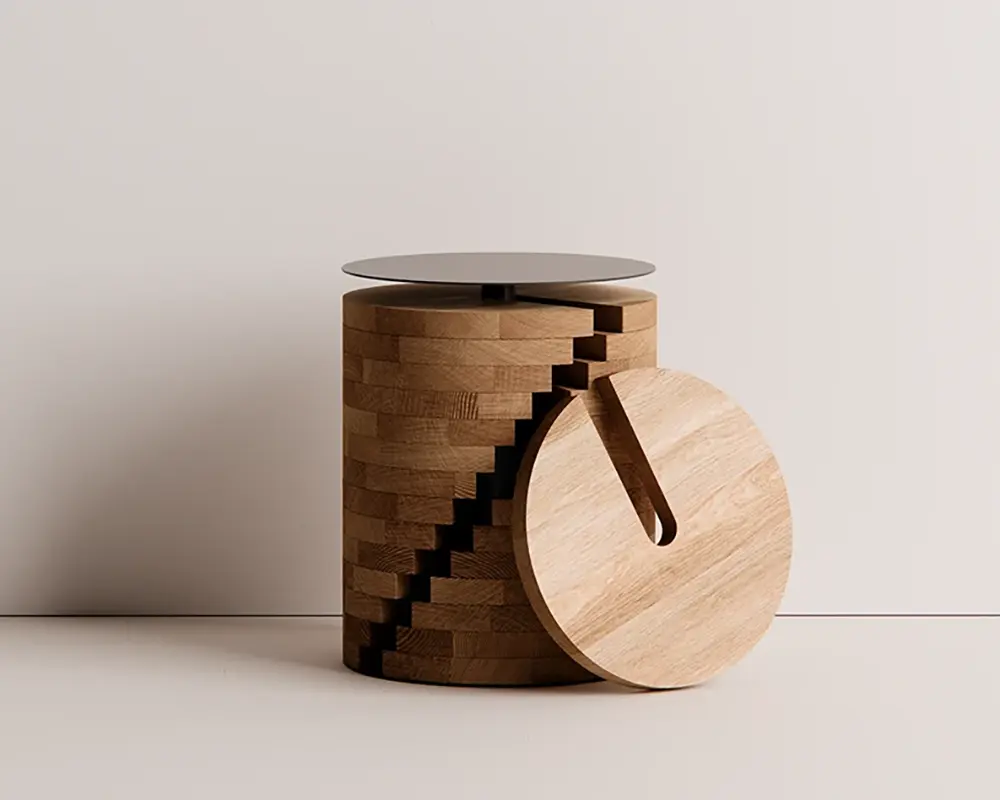 This isn’t your average, static wooden side table. It’s built around a rock-solid central metal frame that acts as the “spine” for a series of beautifully textured, CNC-cut wooden disks. The magic happens when you realize those disks aren’t just for show—they actually slide and pivot! It’s like a puzzle for grown-ups that happens to look incredibly chic in your living room.