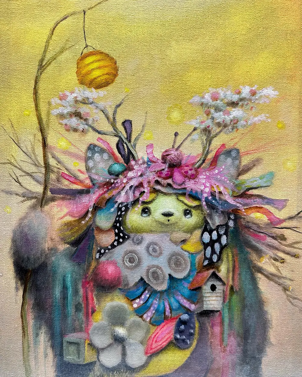 This Asheville-based painter has a knack for creating images that sit right between a beautiful dream and a cozy fairy tale—a unique blend of Surreal Art and pop-surrealism that just hits different. Scott’s universe is one of gentle strangeness, often featuring space motifs and a pervasive, glowing atmosphere that pulls you right in.