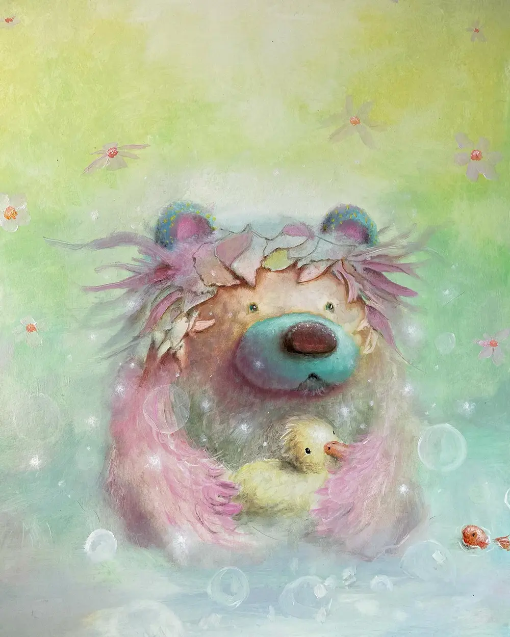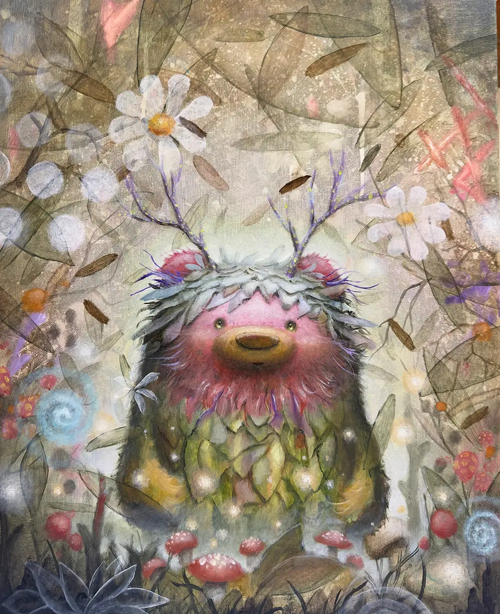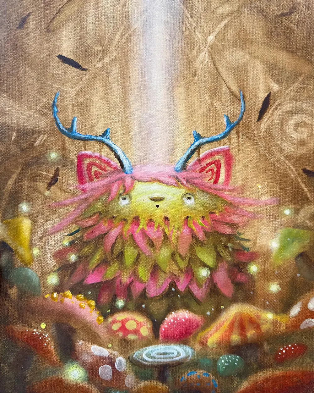 Take the images we shared, for instance: the fuzzy pink otherworldly creature with tiny antlers and a happy little snaggletooth, and the soulful, shaggy-haired creature covered in vibrant green moss and pink mushrooms. These aren’t just animals; they’re emotional beings, the thoughtful guardians of their own celestial landscapes. Scott Mills perfectly captures that feeling of wonder you get when you’re deep in the woods and feel like you’re about to see something truly magical.