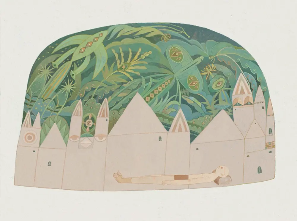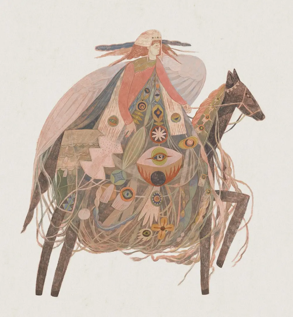 Take a look at the character on horseback—it’s not just a person riding; it’s a whole ecosystem of patterns, eyes, and tangled threads. It feels like a myth that hasn’t been written yet. This kind of whimsical art reminds us that illustration isn’t just about drawing what we see; it’s about drawing how a memory or a legend feels.