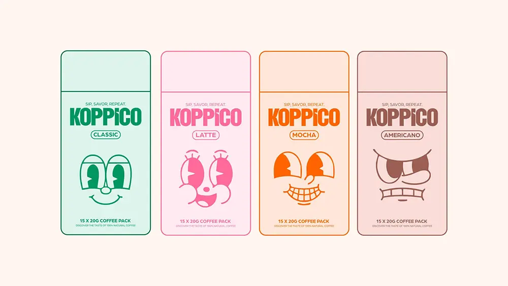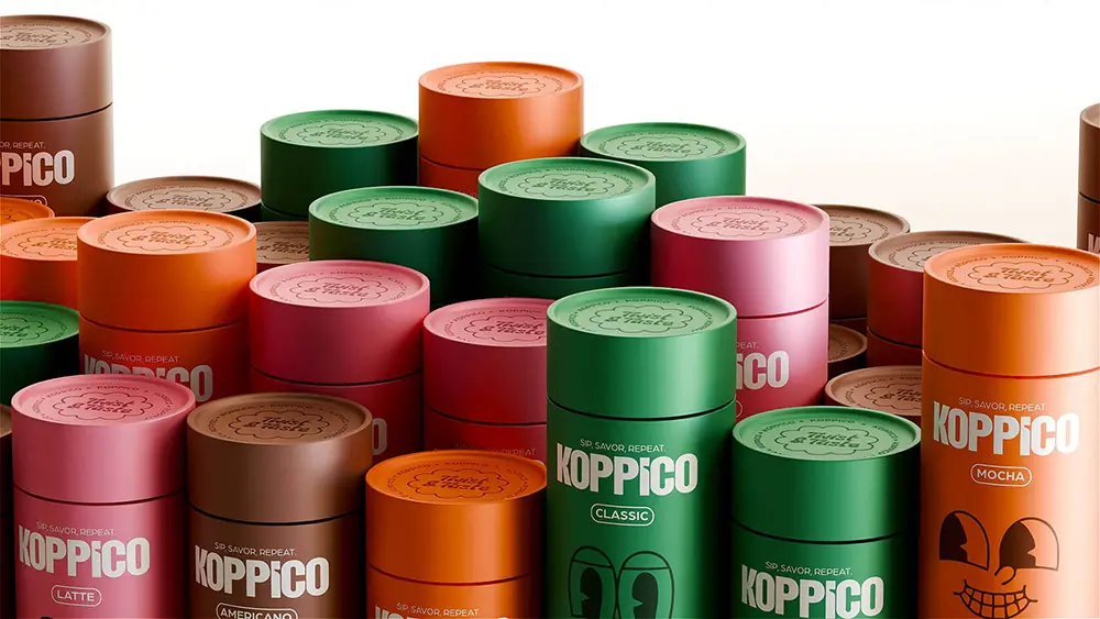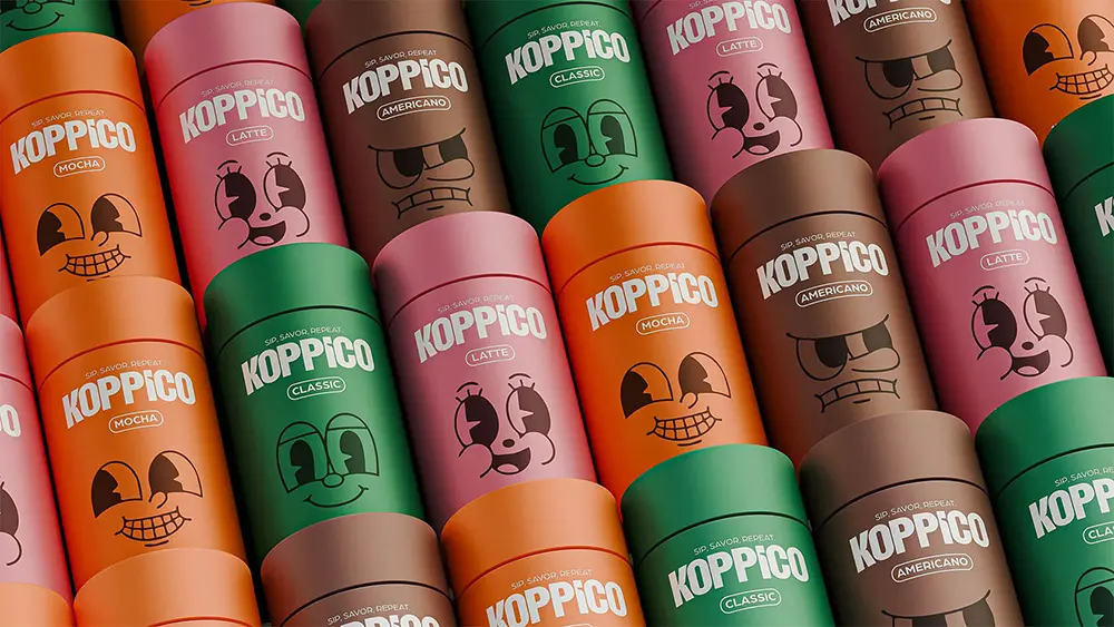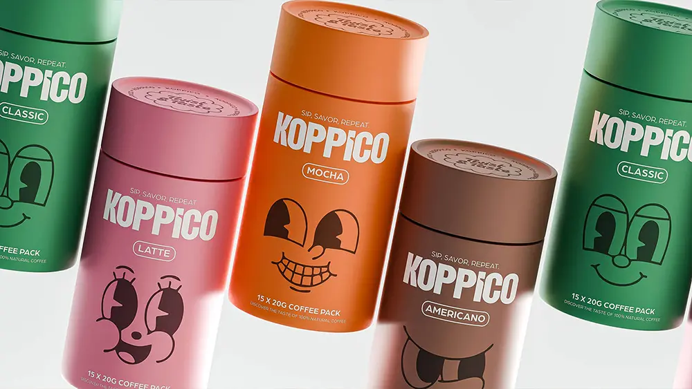 Turkish design agency Venore Creative has given coffee a fresh personality with its playful identity for Koppico coffee. Instead of sticking to traditional branding, the studio crafted colorful, character-driven packaging that reflects the mood of each blend—latte, mocha, americano, and classic. Every cylindrical container feels like its own little character, turning your daily brew into something more expressive and fun.