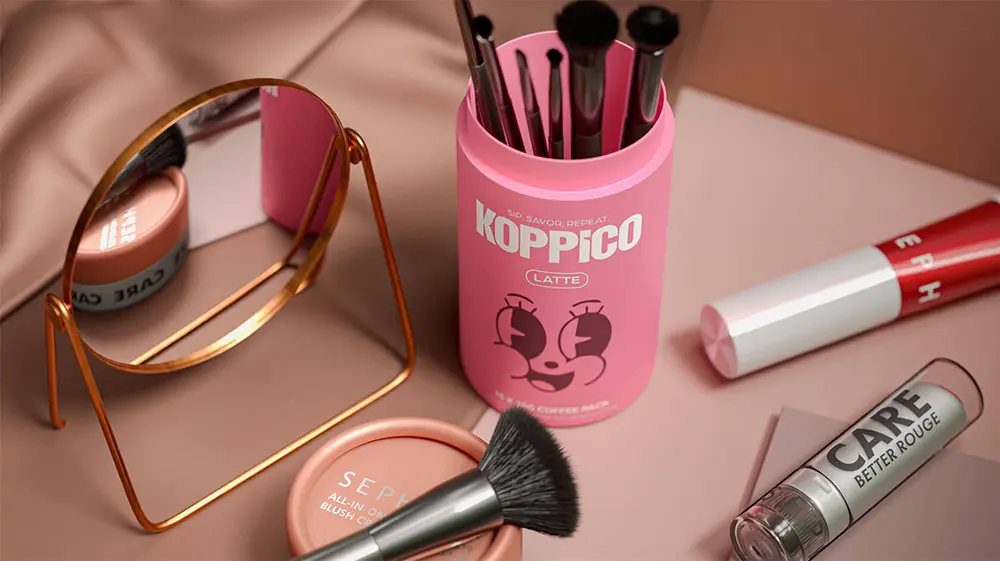 But Koppico isn’t only about style—it’s also about sustainability. The eco-friendly paper containers are printed with natural inks and designed to live on long after the last sip. Whether reused as a plant pot, pencil holder, or even a makeup brush organizer, the packaging keeps its charm while encouraging a more sustainable lifestyle.