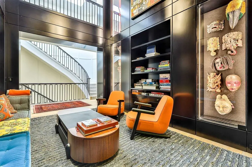 Upstairs and beyond, the home continues to balance restraint with personality. Built-in shelving and darker accent spaces add depth, creating moments of contrast without overwhelming the overall calm. A cozy reading nook framed by rich finishes and curated art feels almost gallery-like, yet still genuinely inviting. It’s a quiet reminder that minimal doesn’t have to mean empty. It simply means intentional.