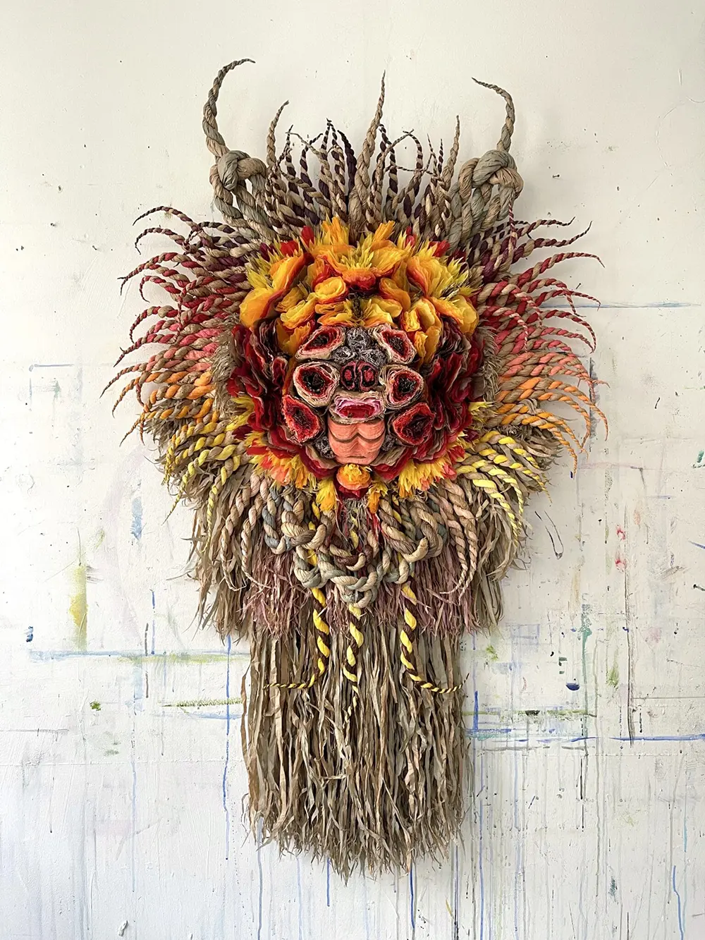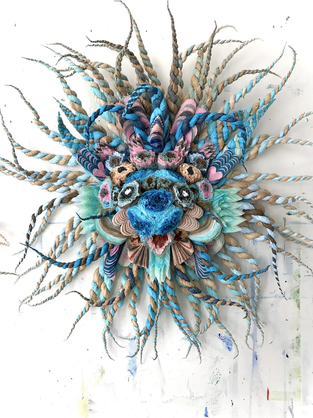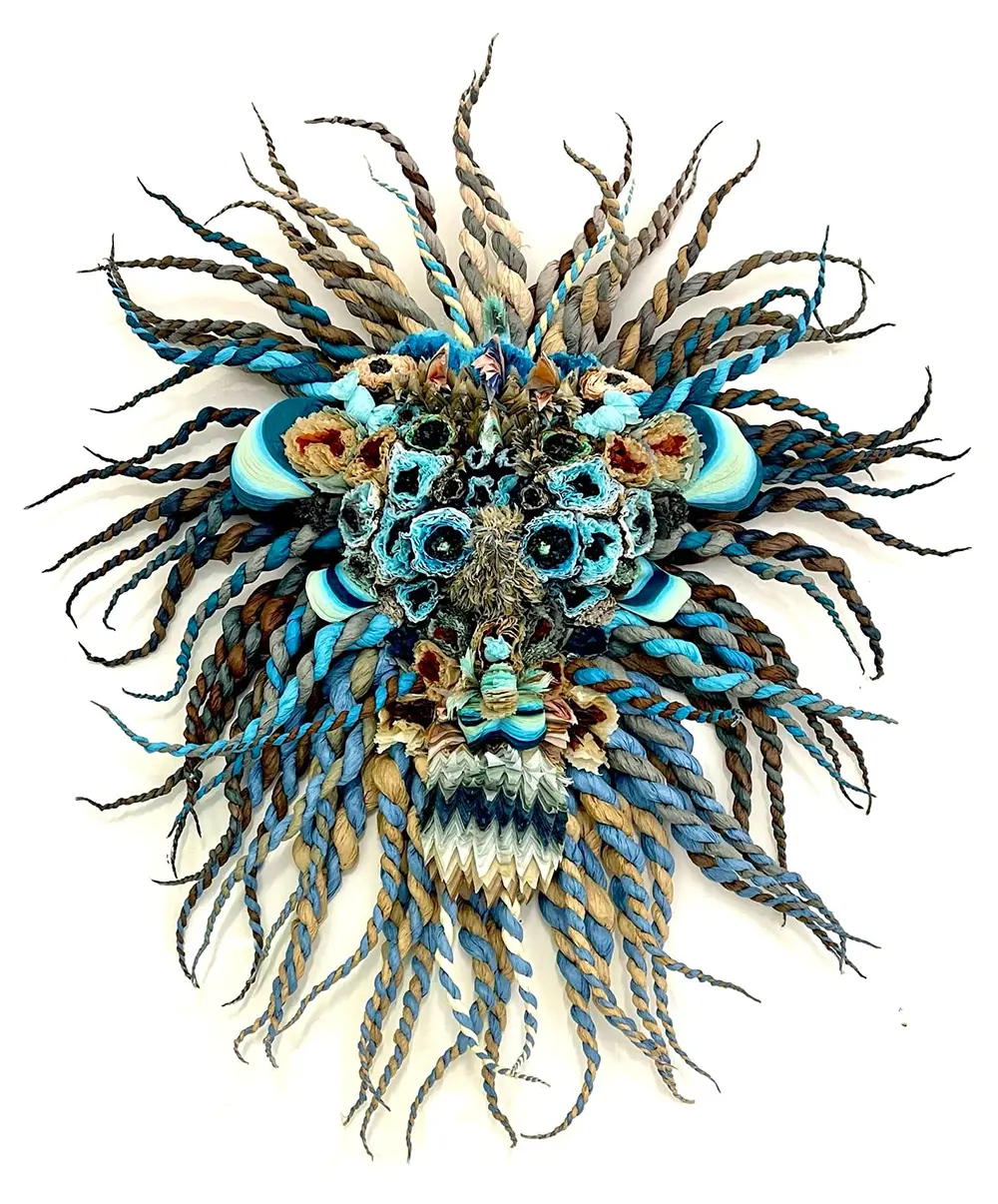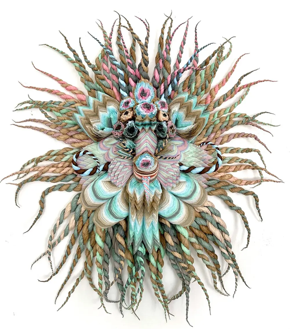 These aren’t your typical sketches. Using the same signature techniques of layering, crimping, and twisting, she creates expressive masks that feel like they’ve stepped out of a dream. Some feature braided horns; others are framed with spiraling tendrils that look like a lion’s mane. They are wild, intricate, and deeply moving pieces of paper art.