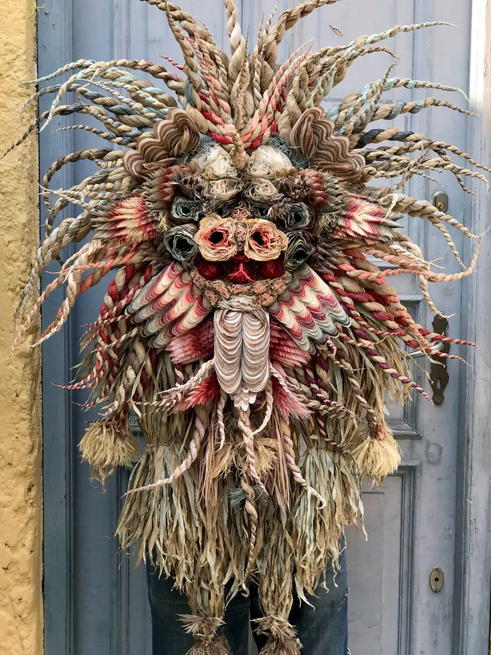 Marianne describes these masks as diaristic—a way to capture a fleeting moment or translate a feeling that words just can’t touch. She draws a comparison to the legendary Giuseppe Arcimboldo, blending floral details and insect-like elements to mirror her internal world. It’s a way of “pairing” her features with how she feels inside at that exact second.